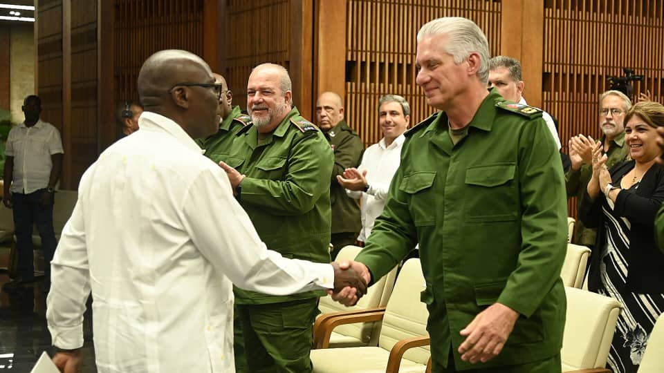 El presidente de Cuba, Miguel Dias Canel Bermúdez, altos funcionarios de este país y representantes del cuerpo diplomático y de la comunidad angolana asistieron, el martes 17, en La Habana, a la ceremonia de conmemoración del 50 aniversario de la Independencia Nacional, celebrada el 11 de este año.