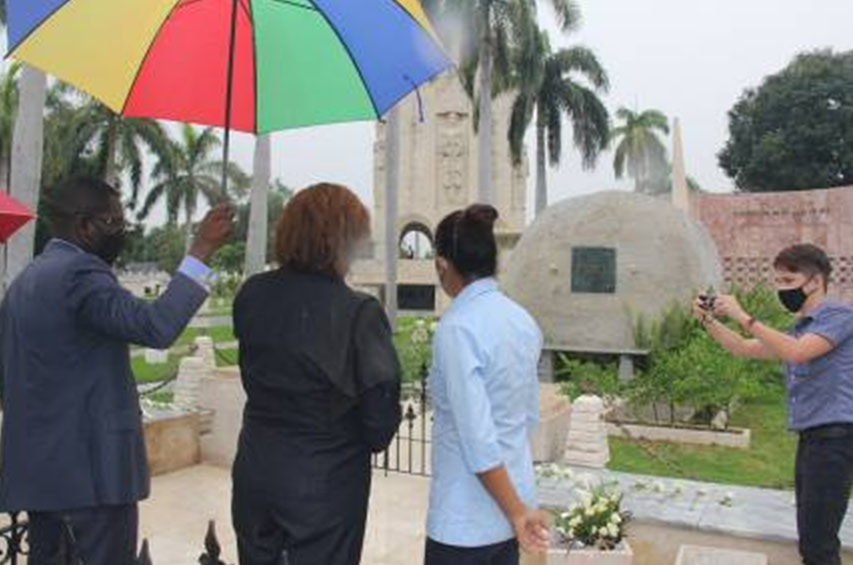 Al final de la visita, y a pesar de las lluvias provocadas por el ciclón Eta, la Embajadora rindió homenaje al Comandante en Jefe Fidel Castro en su monumento en el cementerio Santa Ifigenia en la provincia de Santiago de Cuba. Allá la funcionaria colocó una ofrenda de flores y escribió en el libro de visitas.