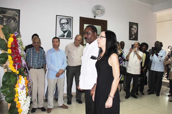 Durante el acto, fue colocada una corona de flores en la sala dedicada a la memoria de los fundadores de la OSPAAL.