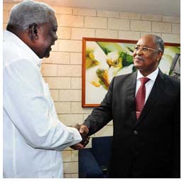 El presidente del Parlamento cubano, Esteban Lazo, recibió este miércoles al Fiscal General de Angola, Joao María Moreira de Sousa.